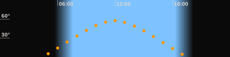 | Höchster Stand (Kulmination) | 11:56 Uhr (h = 57,5°) |