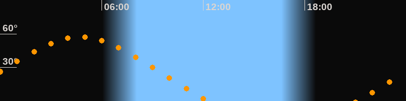 | Untergang | 12:20 Uhr im Nordwesten (αAz = 300,4°) |
