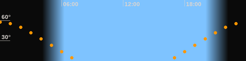 Aufgang16:20 Uhr im Nordosten (αAz = 59,6°)