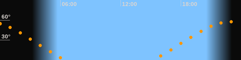 | Aufgang | 15:11 Uhr im Nordosten (αAz = 59,6°) |