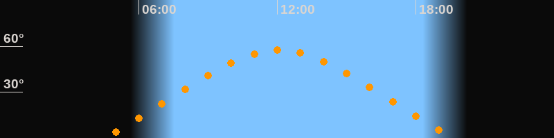 | Höchster Stand (Kulmination) | 12:04 Uhr (h = 57,5°) |