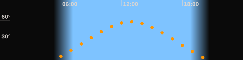 | Höchster Stand (Kulmination) | 12:53 Uhr (h = 57,5°) |
