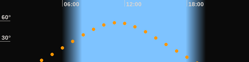 | Höchster Stand (Kulmination) | 11:15 Uhr (h = 57,5°) |