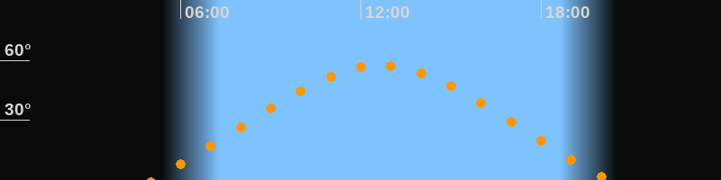 | Höchster Stand (Kulmination) | 12:38 Uhr (h = 57,5°) |