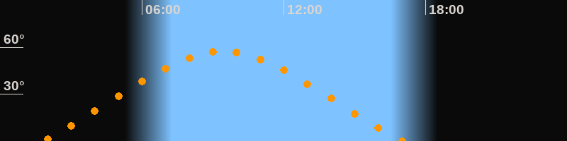 | Höchster Stand (Kulmination) | 09:25 Uhr (h = 57,5°) |