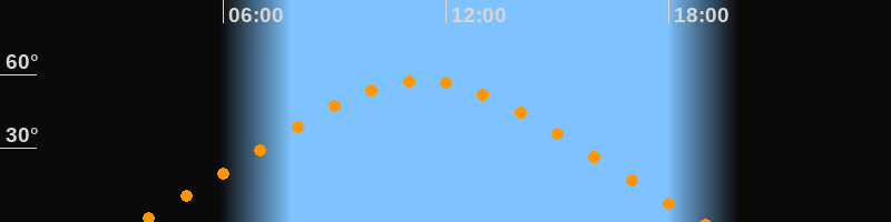 | Höchster Stand (Kulmination) | 11:21 Uhr (h = 57,5°) |
