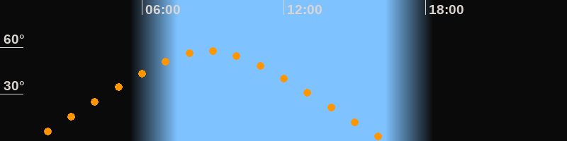 | Höchster Stand (Kulmination) | 08:48 Uhr (h = 57,5°) |