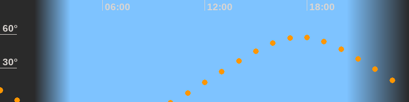 | Höchster Stand (Kulmination) | 17:36 Uhr (h = 57,5°) |