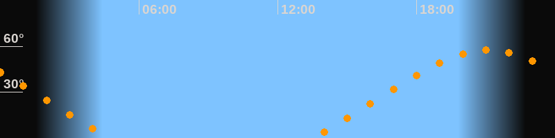 | Aufgang | 13:28 Uhr im Nordosten (αAz = 59,6°) |
