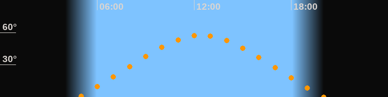 | Höchster Stand (Kulmination) | 12:26 Uhr (h = 57,5°) |