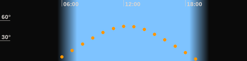 | Höchster Stand (Kulmination) | 12:20 Uhr (h = 51,7°) |