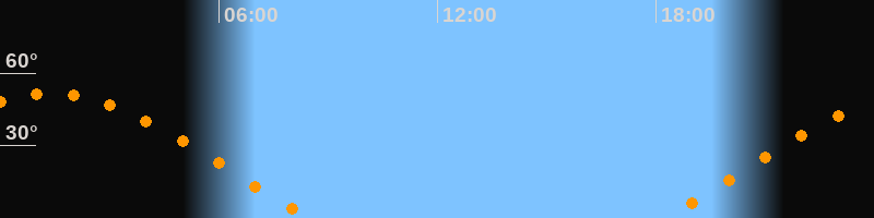 | Aufgang | 18:15 Uhr im Osten (αAz = 69,4°) |