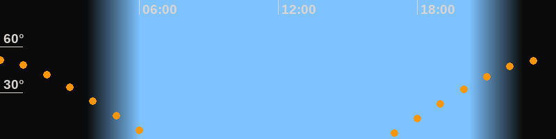 | Aufgang | 16:29 Uhr im Osten (αAz = 69,4°) |