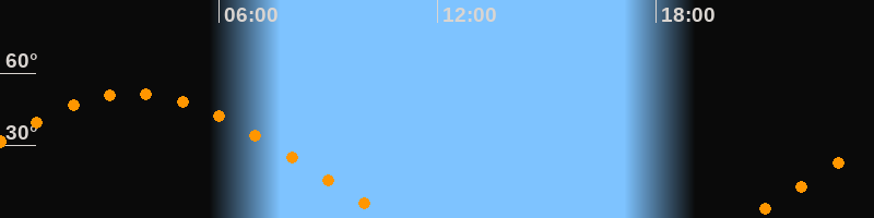 | Aufgang | 20:30 Uhr im Osten (αAz = 69,4°) |