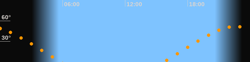 | Aufgang | 15:38 Uhr im Osten (αAz = 69,4°) |