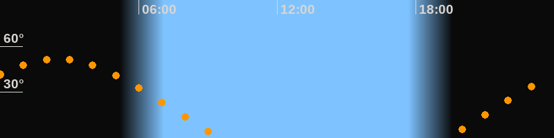 | Aufgang | 19:18 Uhr im Osten (αAz = 69,2°) |