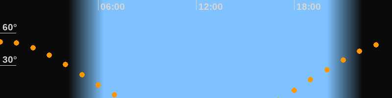 | Aufgang | 17:07 Uhr im Osten (αAz = 69,2°) |