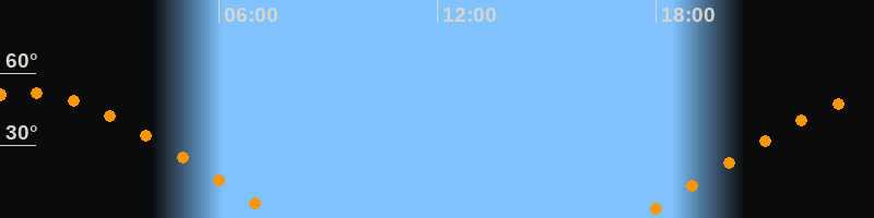 | Aufgang | 17:30 Uhr im Osten (αAz = 69,2°) |
