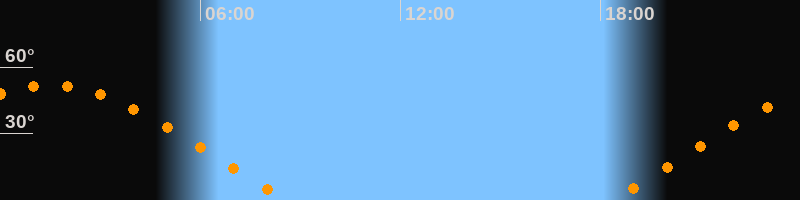| Aufgang | 18:19 Uhr im Osten (αAz = 69,2°) |