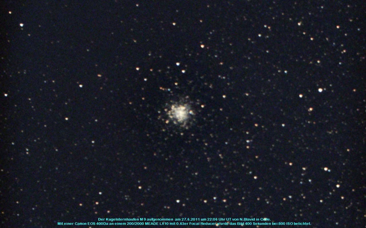 Der Kugelsternhaufen M 9 ist vom Typ VIII. Entdeckt wurde er am 28. Mai 1764 von Messier.
