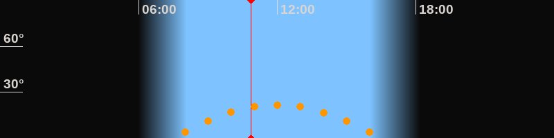 | Höchster Stand (Kulmination) | 11:59 Uhr (h = 21,8°) |