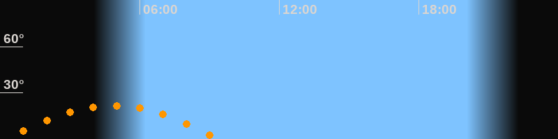 | Untergang | 09:22 Uhr im Südwesten (αAz = 242,4°) |
