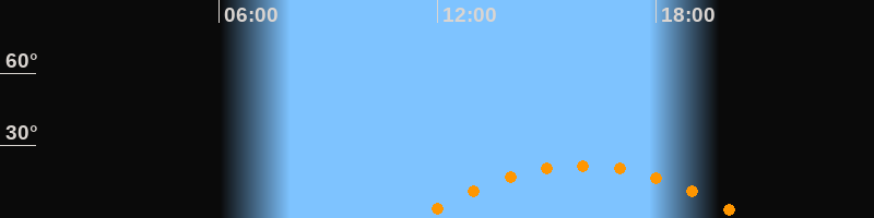 | Aufgang | 11:26 Uhr im Südosten (αAz = 117,6°) |