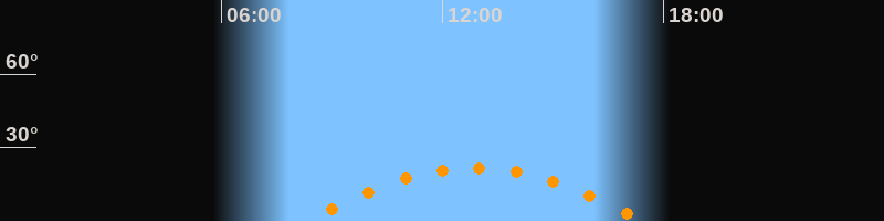 | Höchster Stand (Kulmination) | 12:53 Uhr (h = 21,8°) |