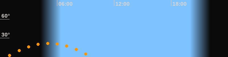 | Untergang | 09:39 Uhr im Südwesten (αAz = 242,4°) |
