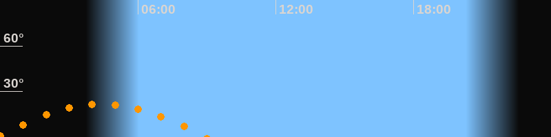 | Untergang | 08:57 Uhr im Südwesten (αAz = 242,4°) |