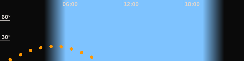 | Untergang | 09:46 Uhr im Südwesten (αAz = 242,4°) |