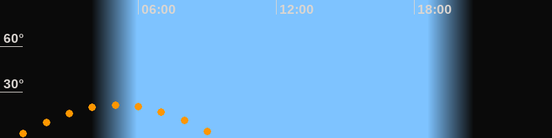 | Aufgang | 00:29 Uhr im Südosten (αAz = 117,6°) |
