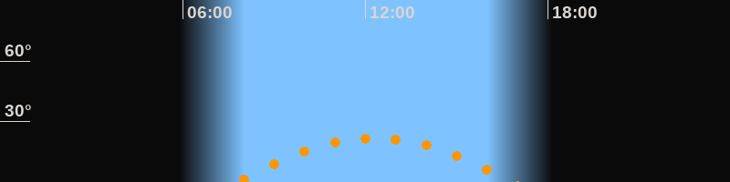 | Höchster Stand (Kulmination) | 12:19 Uhr (h = 21,8°) |