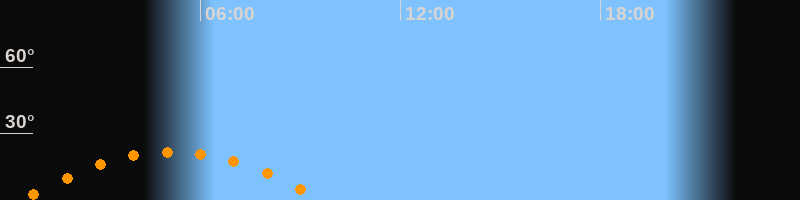 | Untergang | 09:42 Uhr im Südwesten (αAz = 242,4°) |