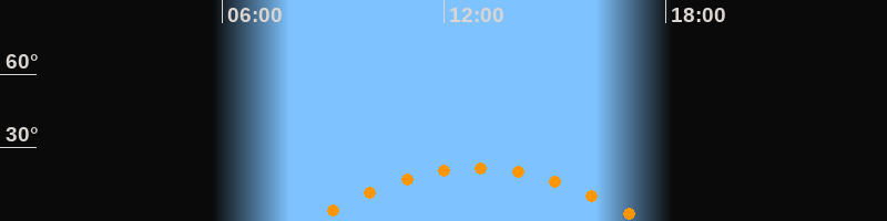 | Höchster Stand (Kulmination) | 12:54 Uhr (h = 21,8°) |