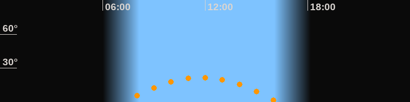 | Höchster Stand (Kulmination) | 11:45 Uhr (h = 21,8°) |