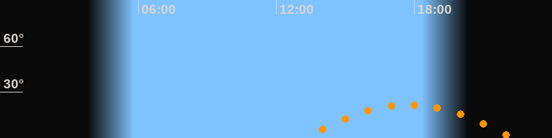 | Aufgang | 13:13 Uhr im Südosten (αAz = 117,6°) |