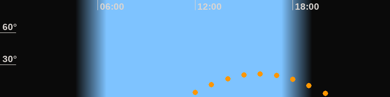 | Aufgang | 11:23 Uhr im Südosten (αAz = 117,6°) |