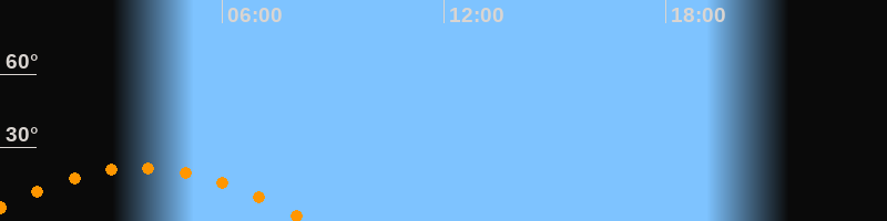 | Untergang | 08:21 Uhr im Südwesten (αAz = 242,4°) |