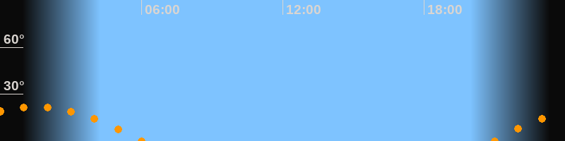 | Untergang | 06:03 Uhr im Südwesten (αAz = 242,4°) |