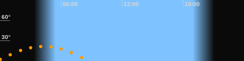| Untergang | 08:46 Uhr im Südwesten (αAz = 242,4°) |