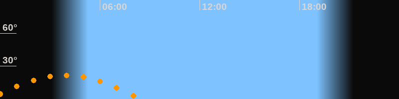 | Aufgang | 23:18 Uhr im Südosten (αAz = 117,6°) |