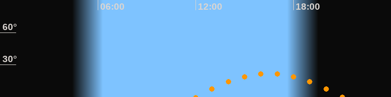 | Höchster Stand (Kulmination) | 16:30 Uhr (h = 21,8°) |