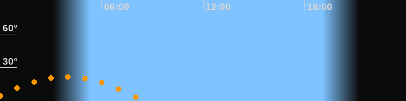 | Untergang | 08:29 Uhr im Südwesten (αAz = 242,4°) |