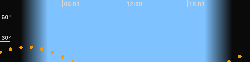 | Aufgang | 21:53 Uhr im Südosten (αAz = 117,6°) |