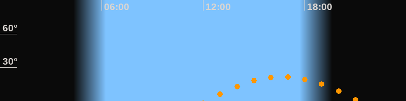 | Höchster Stand (Kulmination) | 16:40 Uhr (h = 21,8°) |