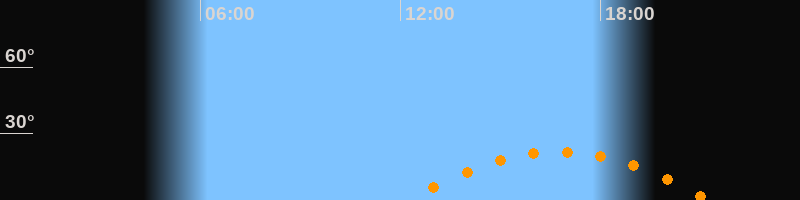 | Untergang | 21:17 Uhr im Südwesten (αAz = 242,4°) |