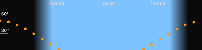 | Aufgang | 16:50 Uhr im Osten (αAz = 68,2°) |