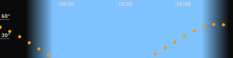 | Aufgang | 15:15 Uhr im Osten (αAz = 68,2°) |
