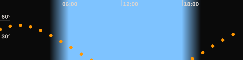 | Aufgang | 18:41 Uhr im Osten (αAz = 68,2°) |